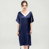 Corchas de camisón 100% de seda para mujeres Nightdress de seda - Azul marino