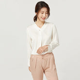 Camisa de seda con el cuello del cuello del cuello del lazo del lazo del lazo del tono de seda - Beige