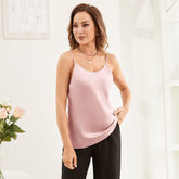 Correo de espagueti de seda de seda para mujeres Corias de espagueti de la tripulación Topas de seda - Rosa rosado