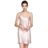 Hecho de seda de alta calidad, este vestido lencero corto y fluido ofrece una sensación ligera, transpirable y ultrasuave al tacto. Su clásico escote redondo y diseño sin mangas le confieren un toque minimalista y chic, ideal para relajarse o para una noche de...- De €113,95 EUR