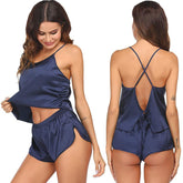 Seda cami pj set puro verano sexy seda camisole para mujeres - Azul marino