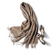 Esta lujosa bufanda de cachemira presenta un diseño atemporal y sencillo con flecos en los bordes para un toque de elegancia. Suave y ligera, ofrece calidez y comodidad sin ser voluminosa. Su generoso largo permite un estilo versátil, ya sea enrollada alrededor del cuello para mayor calidez o sobre los hombros. Ideal tanto para ocasiones informales como formales, esta bufanda es un accesorio versátil que añade un toque elegante a cualquier look.
