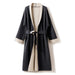 Envuélvete en la elegancia atemporal de este cárdigan de cachemira de doble cara, diseñado para ofrecerte comodidad y sofisticación. Con un ribete beige en contraste sobre una base marrón intenso, esta prenda larga te permite añadir capas fácilmente a tu armario. El cinturón anudado ciñe la cintura para una silueta favorecedora, mientras que el diseño abierto al frente ofrece un estilo versátil.