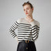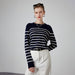 Mejora tu vestuario diario con este suéter de cachemira, diseñado para una elegancia y comodidad sin esfuerzo. Confeccionado con un 35 % de cachemira, ofrece un tacto suave y una calidez ligera. El atemporal estampado de rayas horizontales le aporta un toque náutico chic, mientras que el cuello redondo y las mangas largas lo hacen versátil para combinarlo con otras prendas o llevarlo solo.